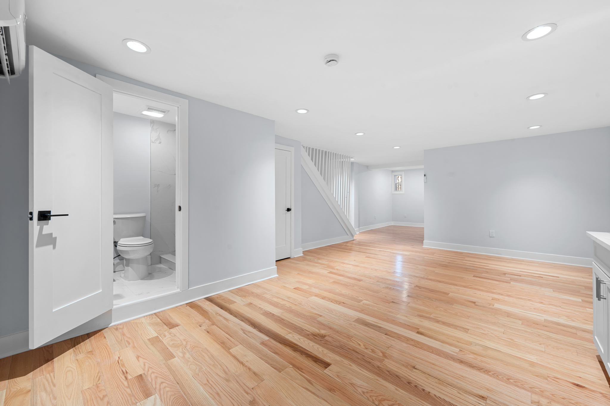 Open the door and enter the parlor floor of the owners duplex which features an expansive sun drenched living area which provides great space for entertaining. Spacious dining area which is overlooked by the granite kitchen any chef will love. Kitchen features floor to ceiling custom cabinetry, full fleet of stainless steel appliances, double sinks, island for bar stool seating and leads out into lush rear yard. Powder room on first floor for your guest.