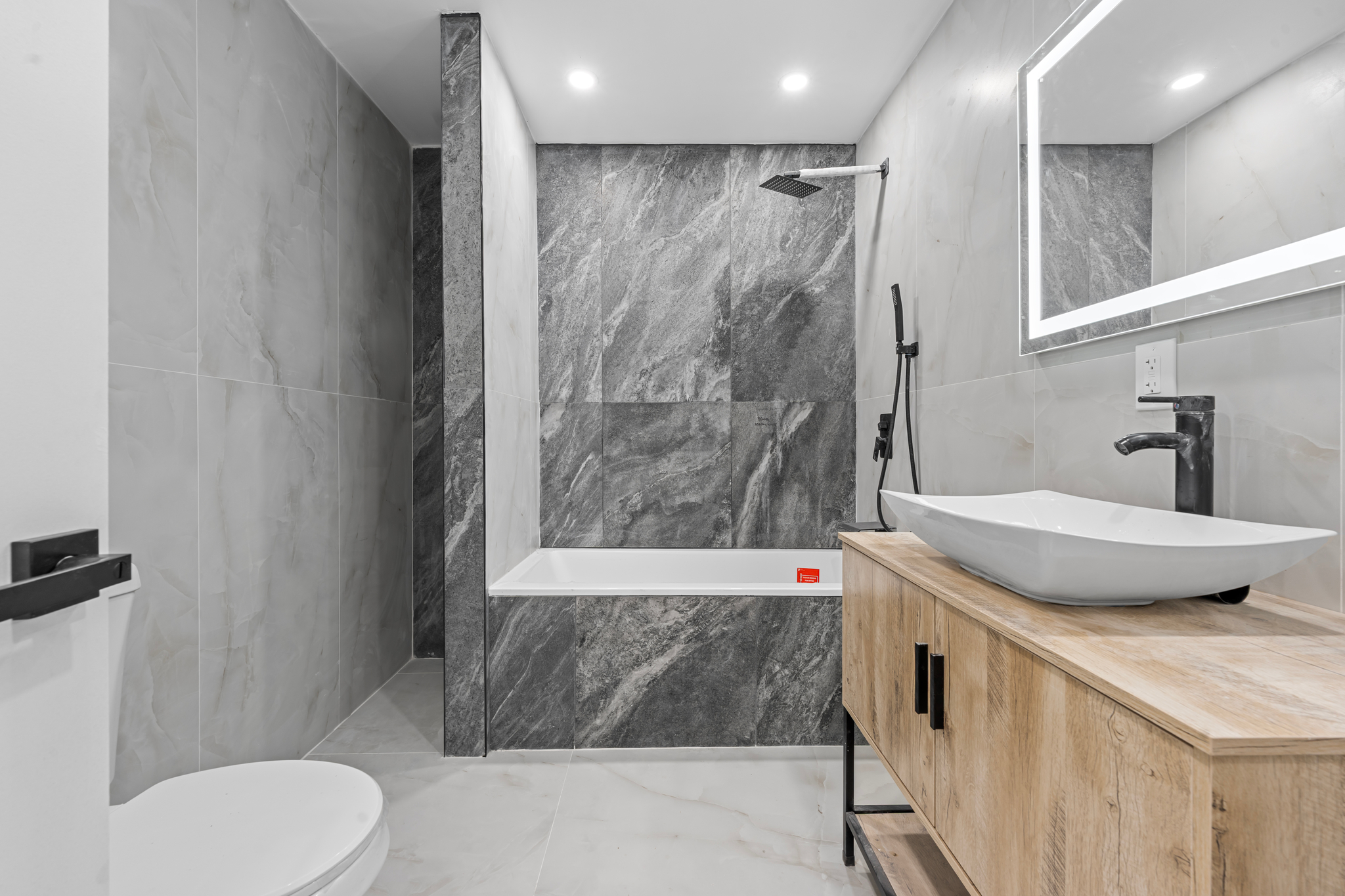 Expansive sun drenched, modern open concept living/dining area provides great space for entertaining. Beautiful chefs granite kitchen equipped with floor to ceiling custom cabinetry & adorned with a full fleet of stainless steel appliances. 3 bedrooms with ample closet space. Fully tiled bathroom that boast state of the art wall & floor tiles.