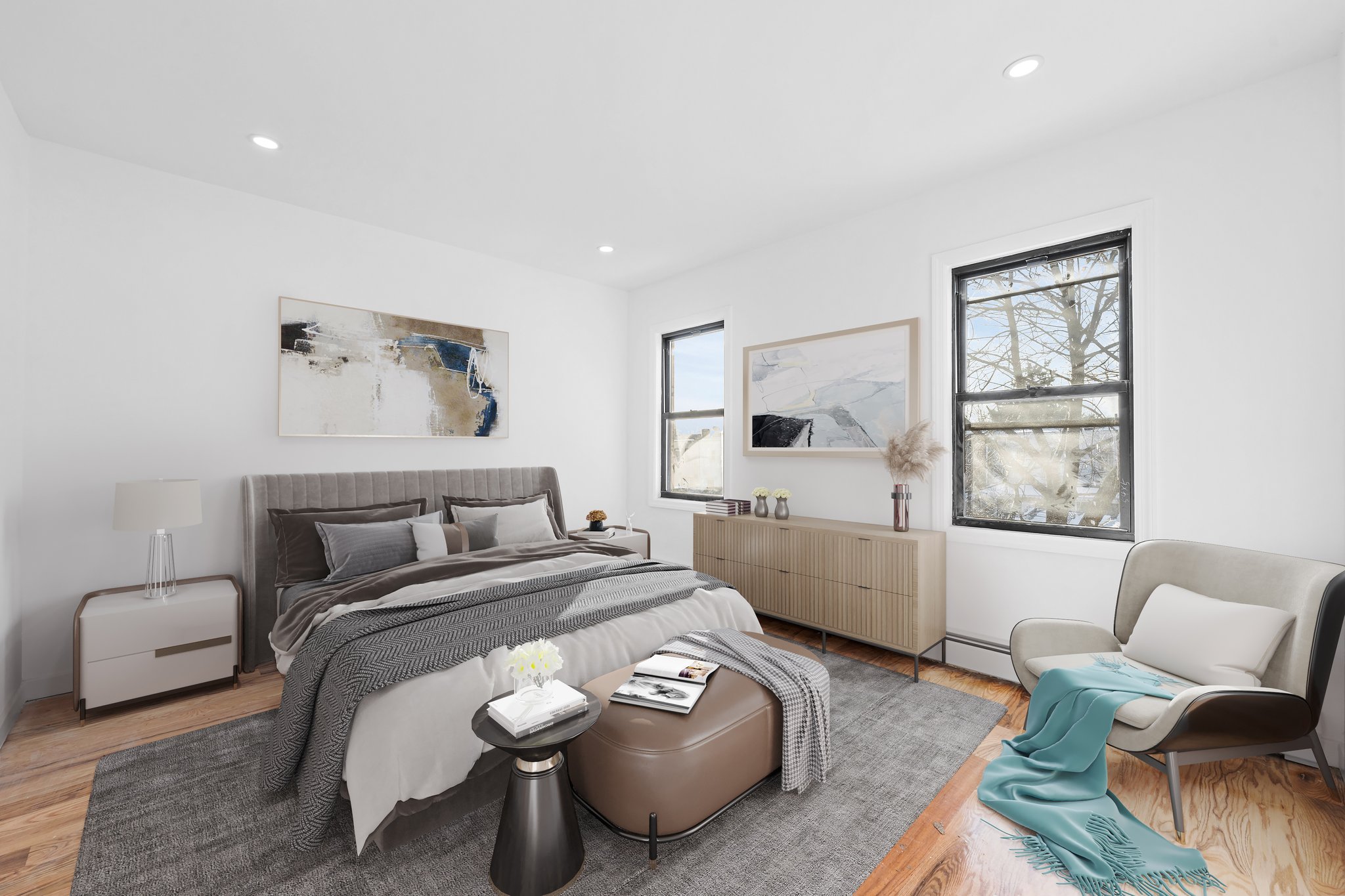 Renovations include brand new select wide oak wood flooring, recessed lighting, updated electrical, heating and plumbing systems throughout.