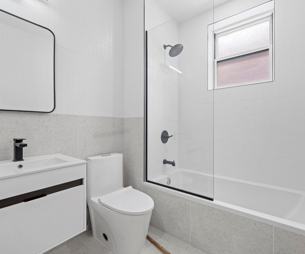 Featuring an expansive sun drenched, modern open concept living/dining area which leads out into a 580 sq/ft outdoor designated rear yard space. The elegant chefs kitchen features floor to ceiling custom cabinetry & adorned with a full fleet of stainless steel appliances. Spacious bedrooms with ample closet space. Fully tiled bathroom with spa-like finishes.