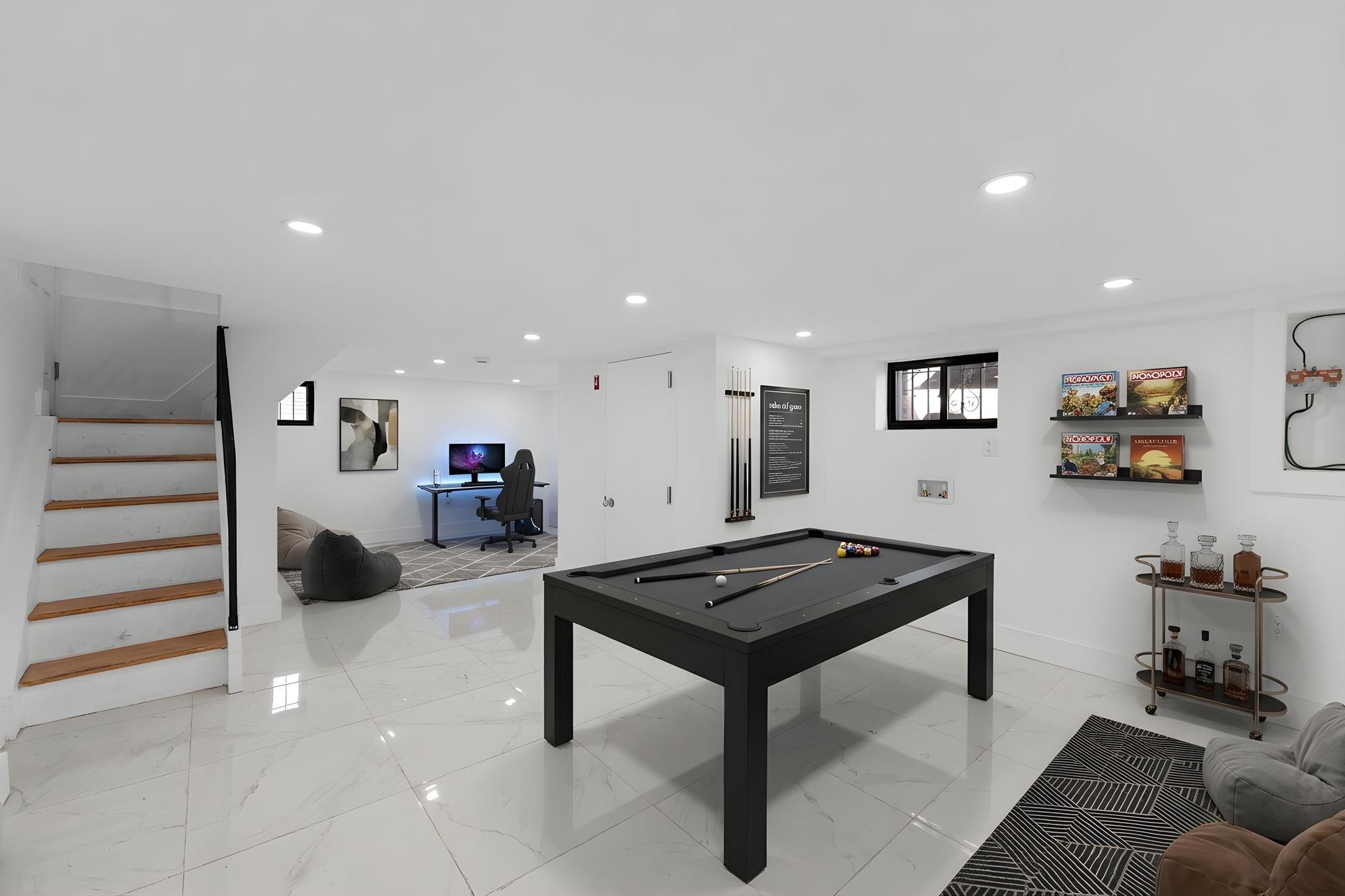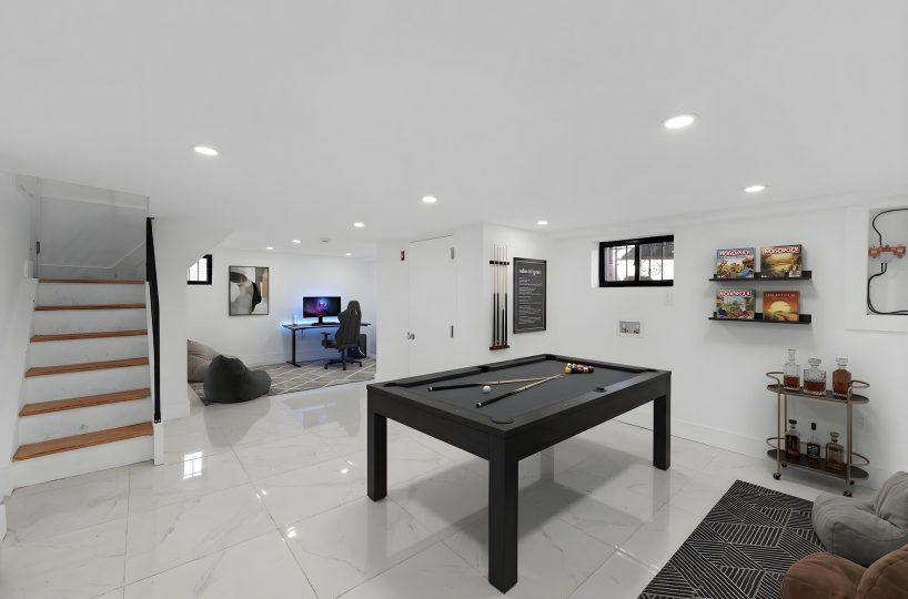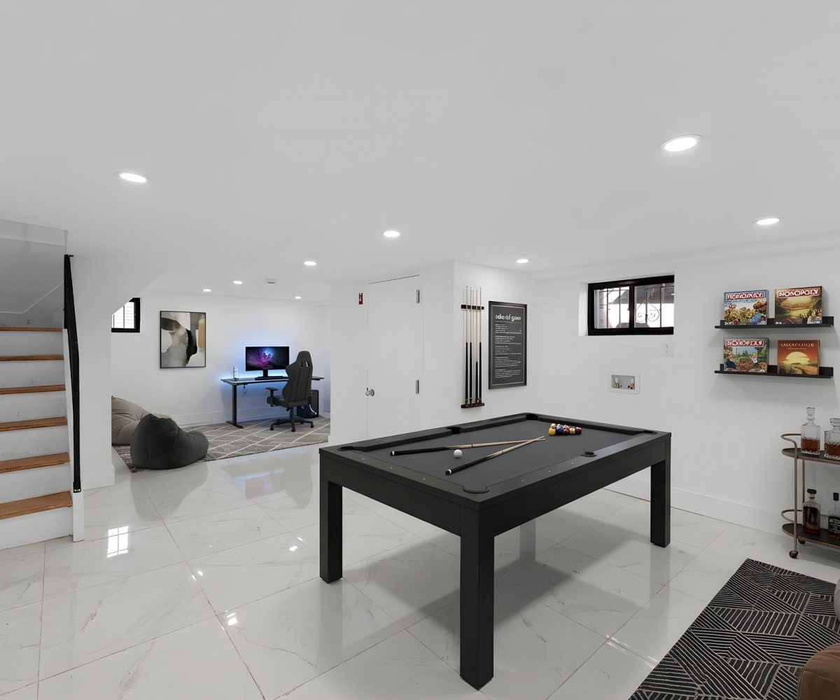 The full finished basement has both interior and exterior access and can easily be used as the perfect ADU, in-law suite, guest quarters, storage space or additional recreational space.