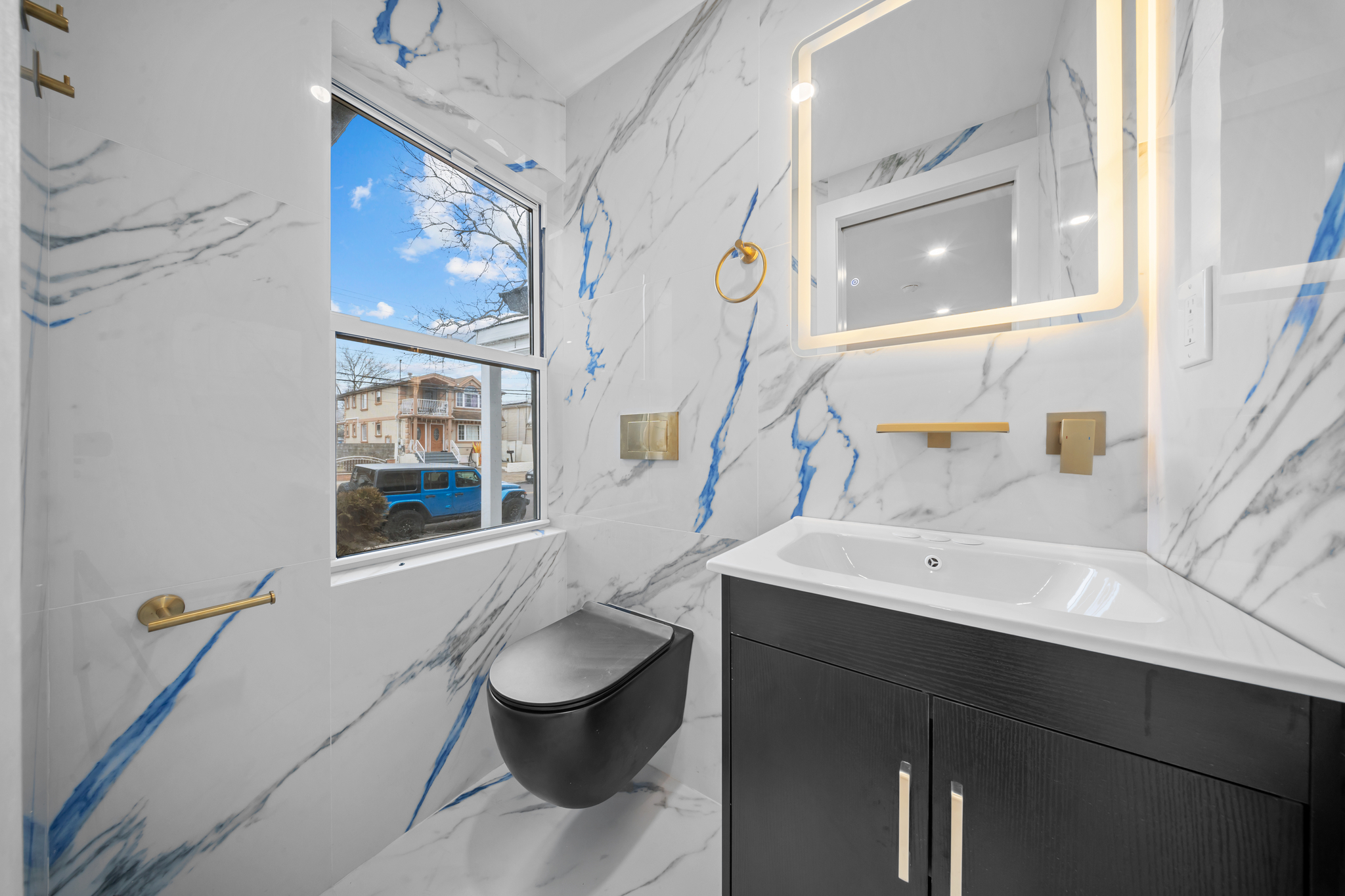Open the door and enter an expansive sun drenched modern open concept living/dining area which provides great space for entertaining. The beautiful chefs granite kitchen is tucked away towards the rear of the property featuring floor to ceiling custom cabinetry, adorned with a full fleet of stainless steel appliances, and leads out into lush rear yard. Powder room on first floor for your guest.