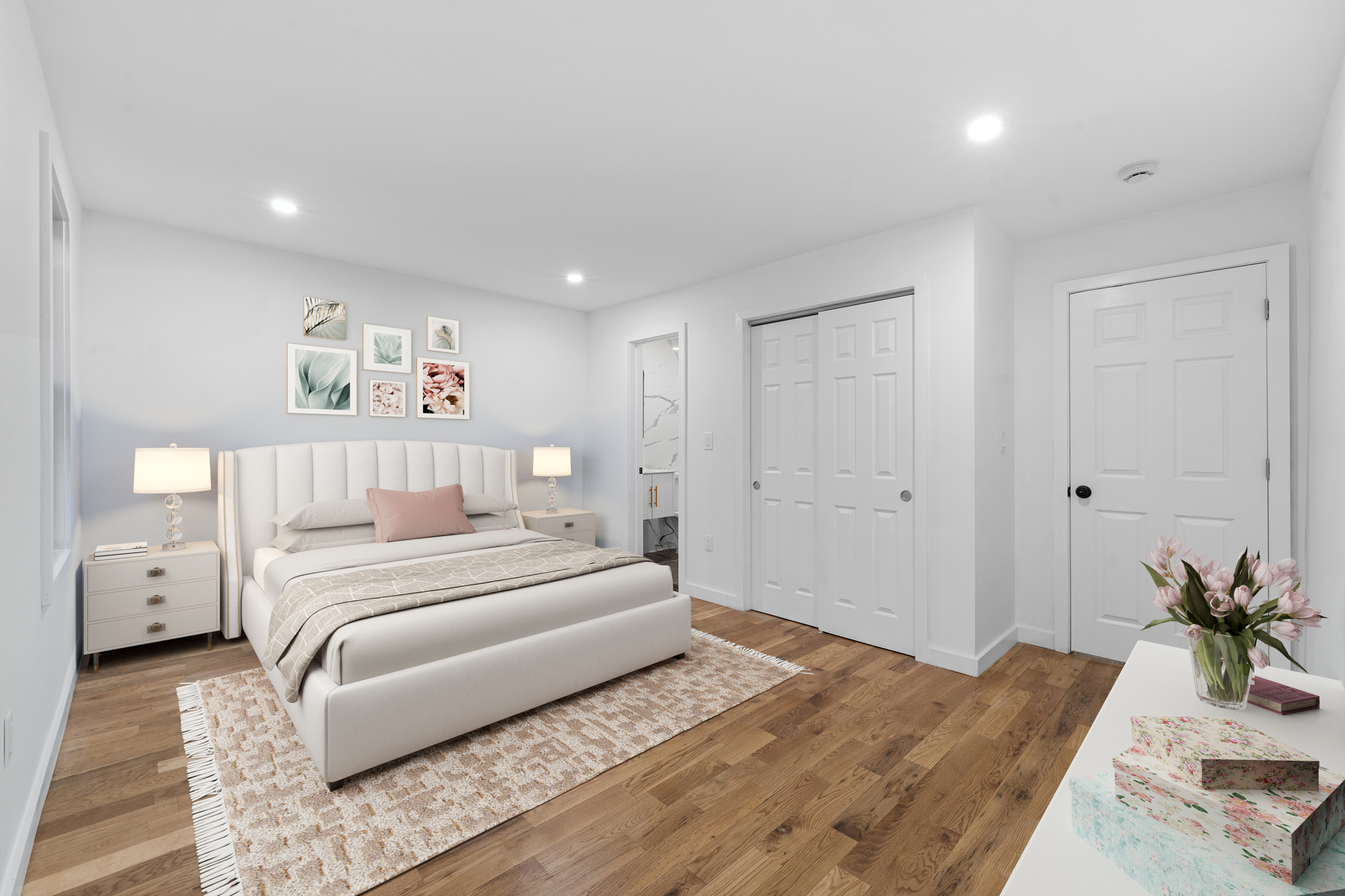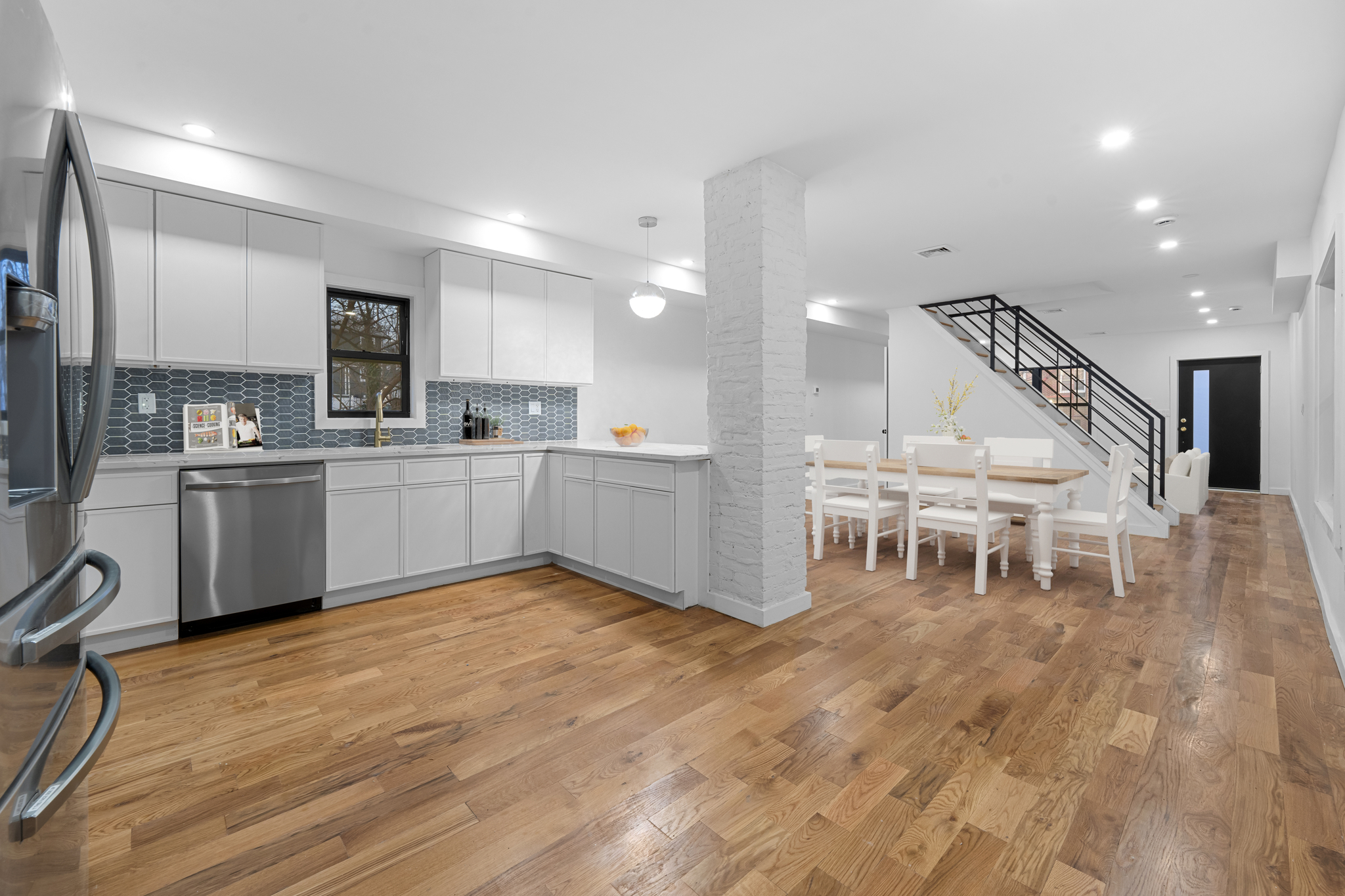 Renovations include brand new hardwood flooring, recessed lighting, Central HVAC, brand new electrical, heating and plumbing systems throughout.
