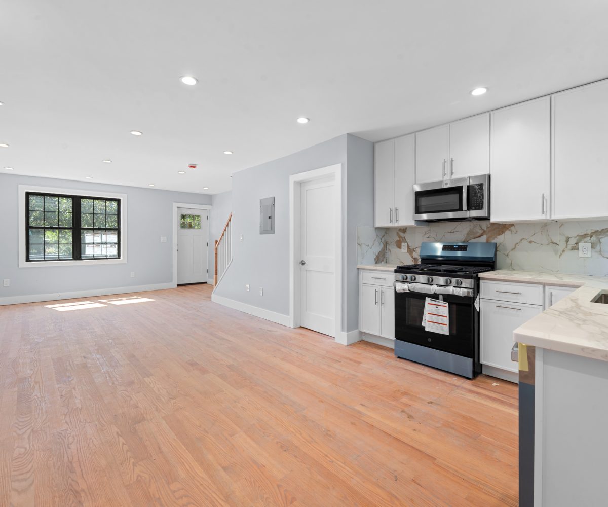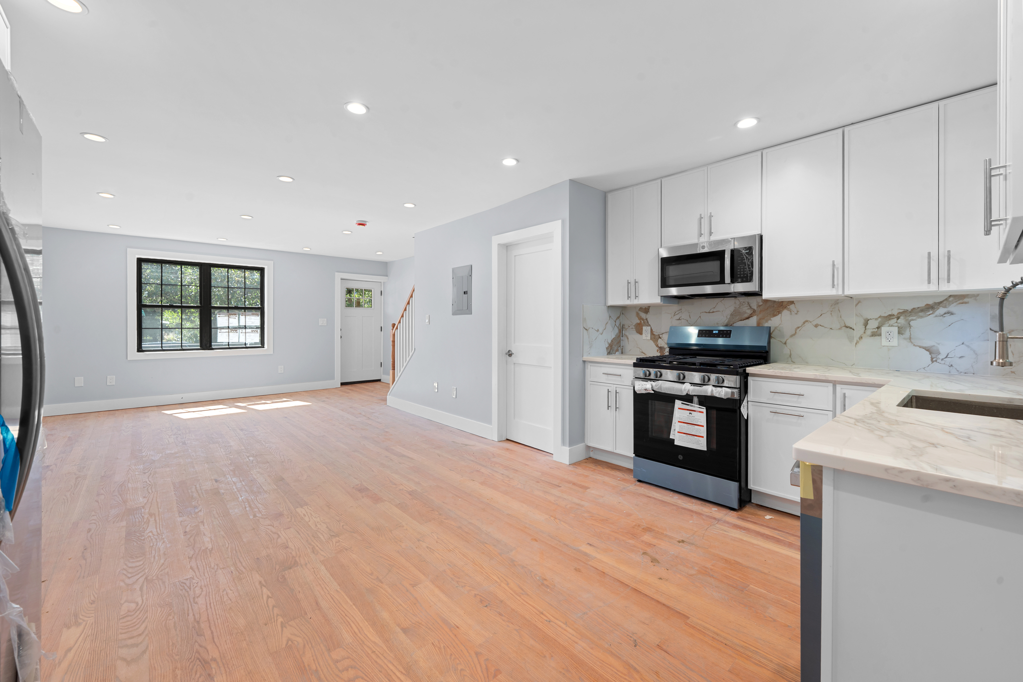 The first floor features an expansive sun drenched modern open concept living/dining area which provides great space for entertaining. The beautiful chefs granite kitchen is equipped with floor to ceiling custom cabinetry, adorned with a full fleet of stainless steel appliances and leads out into lush rear yard.
