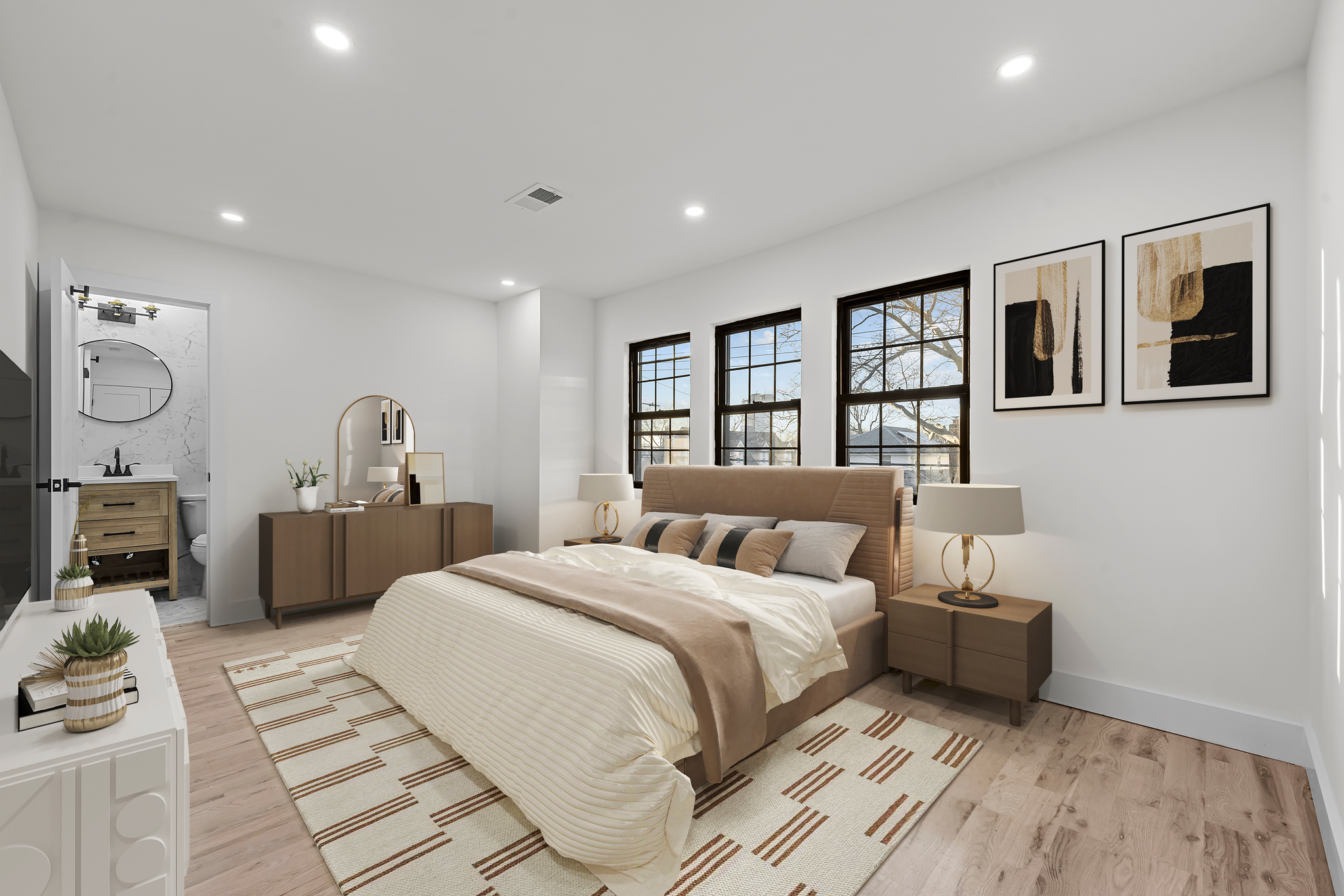 The high ceiling full finished basement is equipped with both interior and exterior access and can easily be used as a in-law suite, nanny quarters, storage space, or additional recreational space. With its unique layout the basement can easily fit two more additional bedrooms.