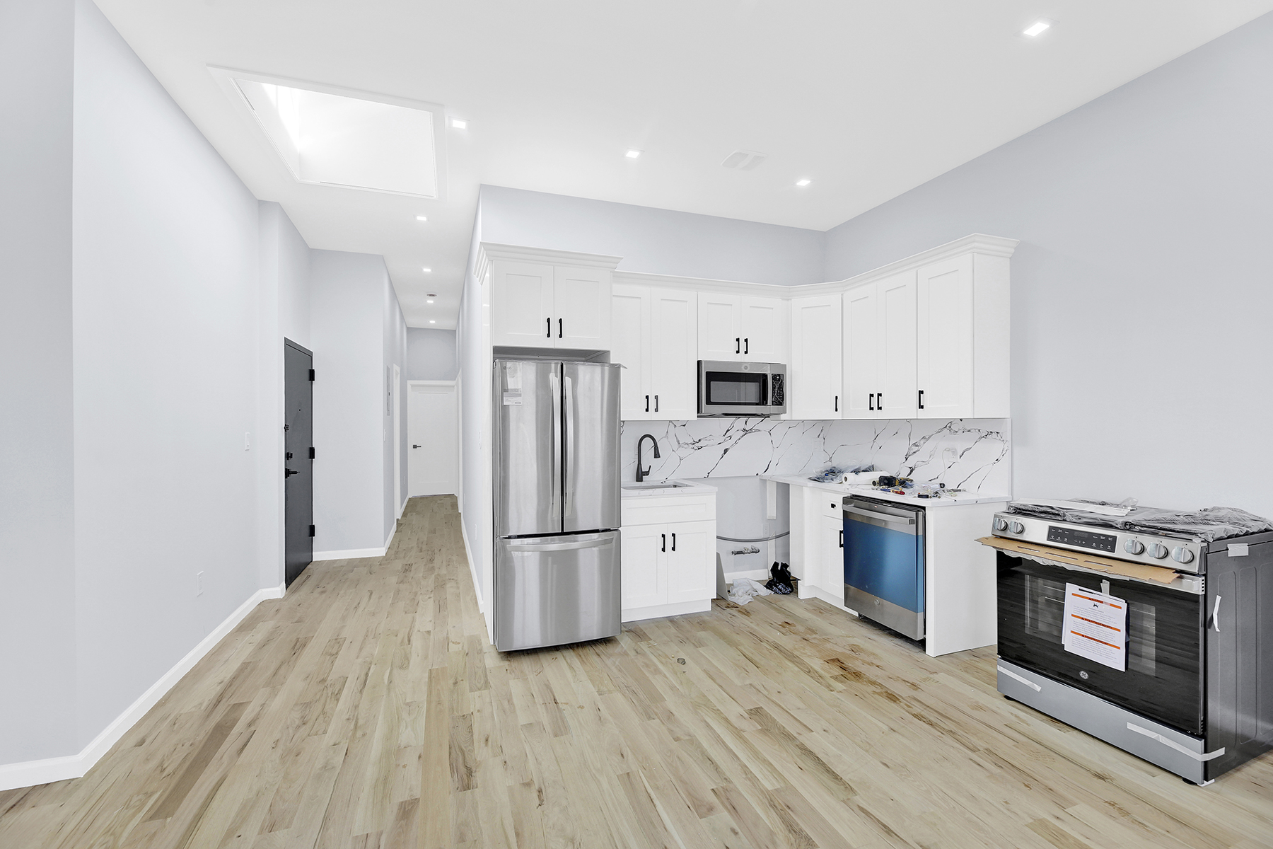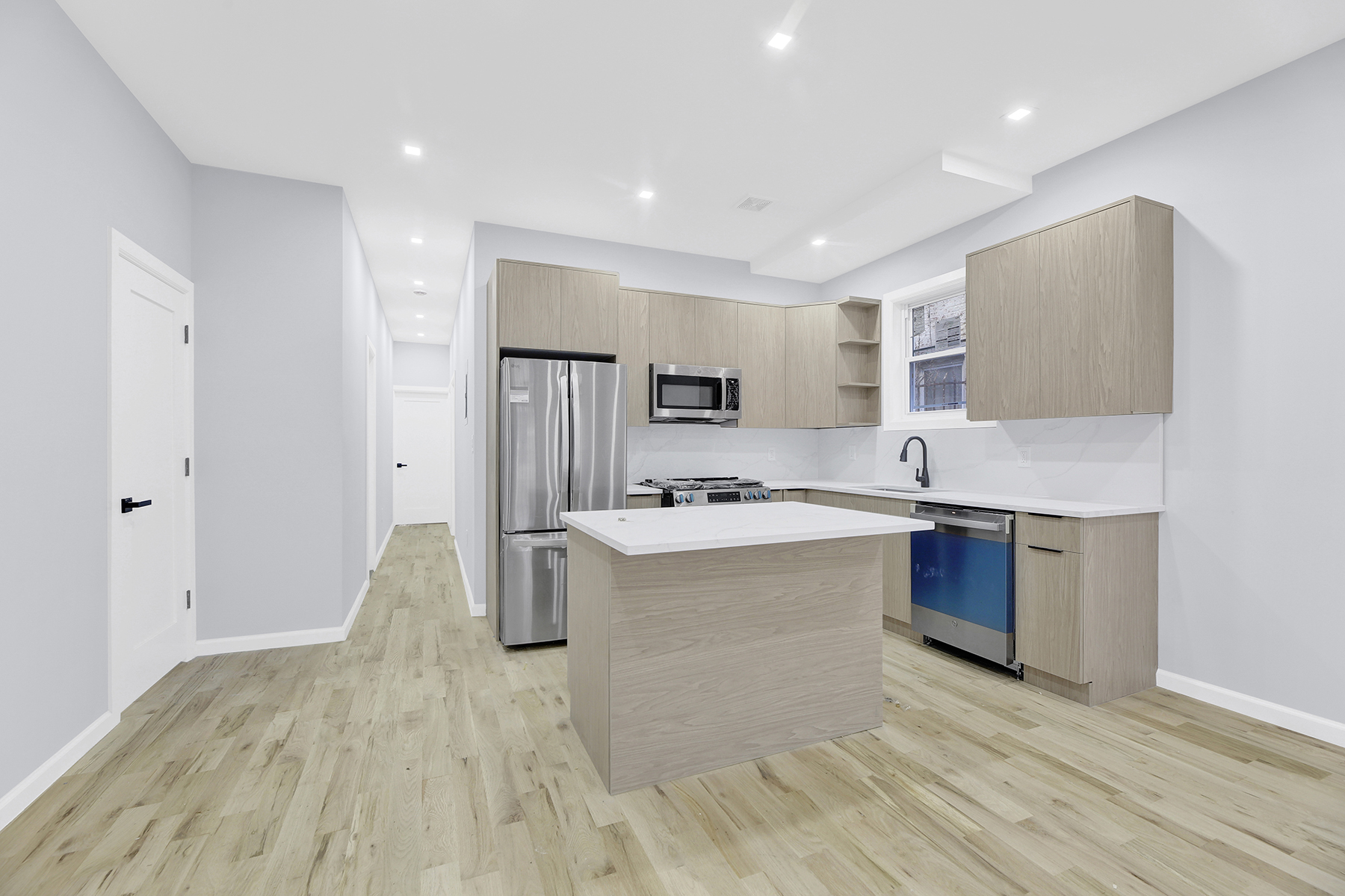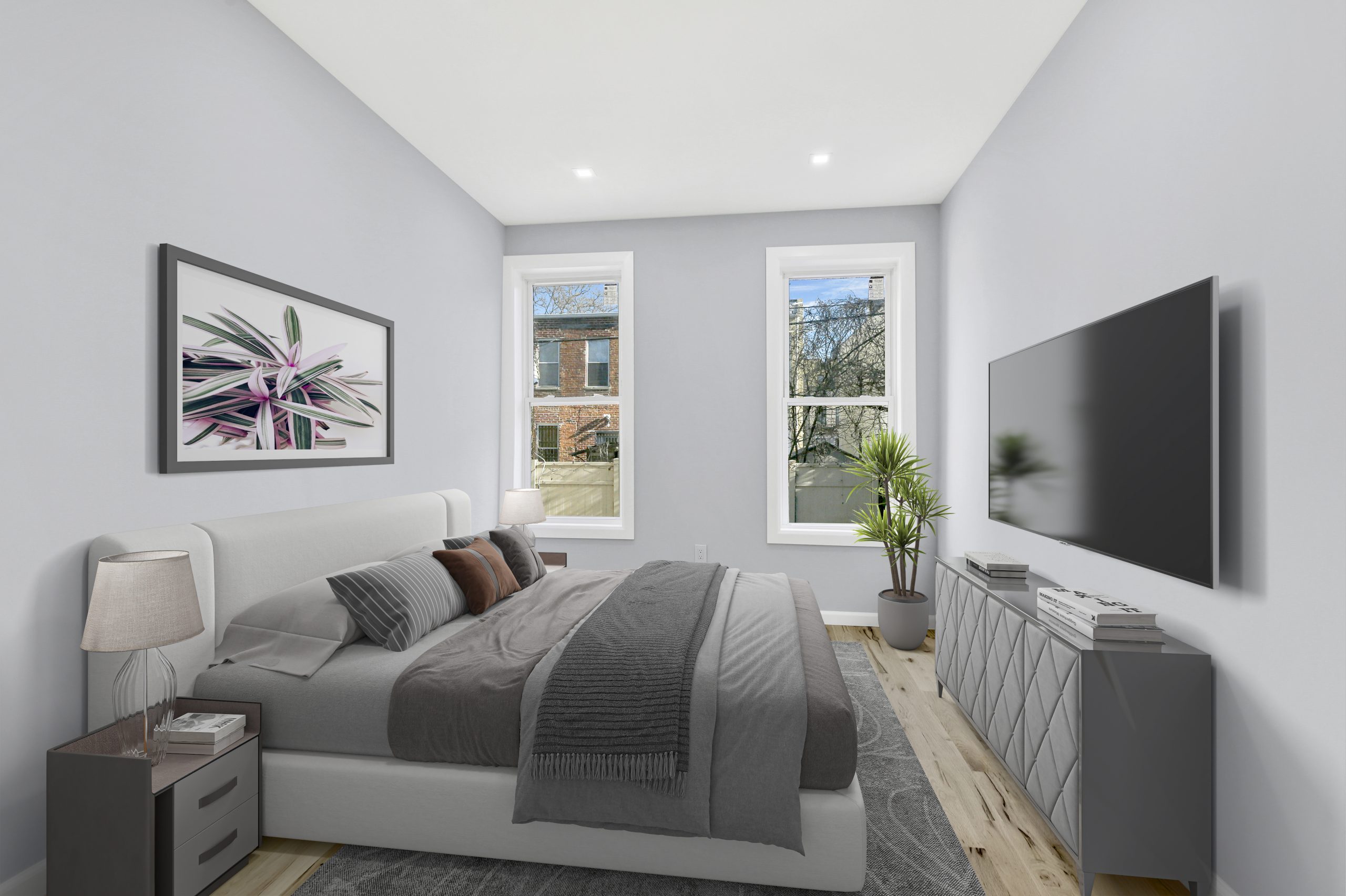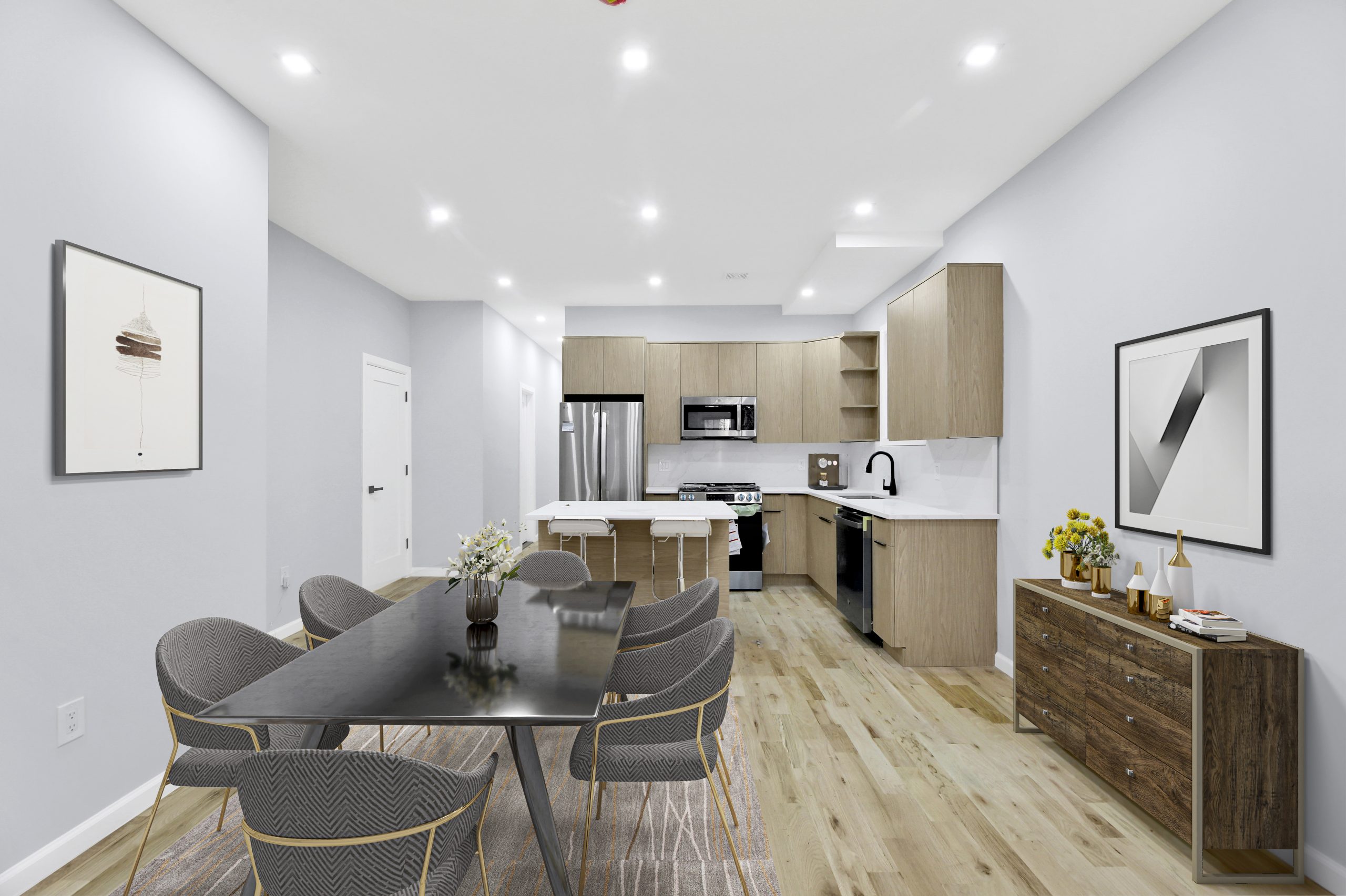 Space, style & modern luxury come together at 1973 Strauss street. A meticulously renovated 20′ x 54′ brick two family sitting on a 25×100 lot on a beautiful tree lined street of Brownsville. Featuring a wide driveway, yes you read right! PARKING IN BROWNSVILLE! This turn key move in ready brick townhouse is the perfect opportunity for buyers looking for space, plus income generating rental property to assist with mortgage payments.