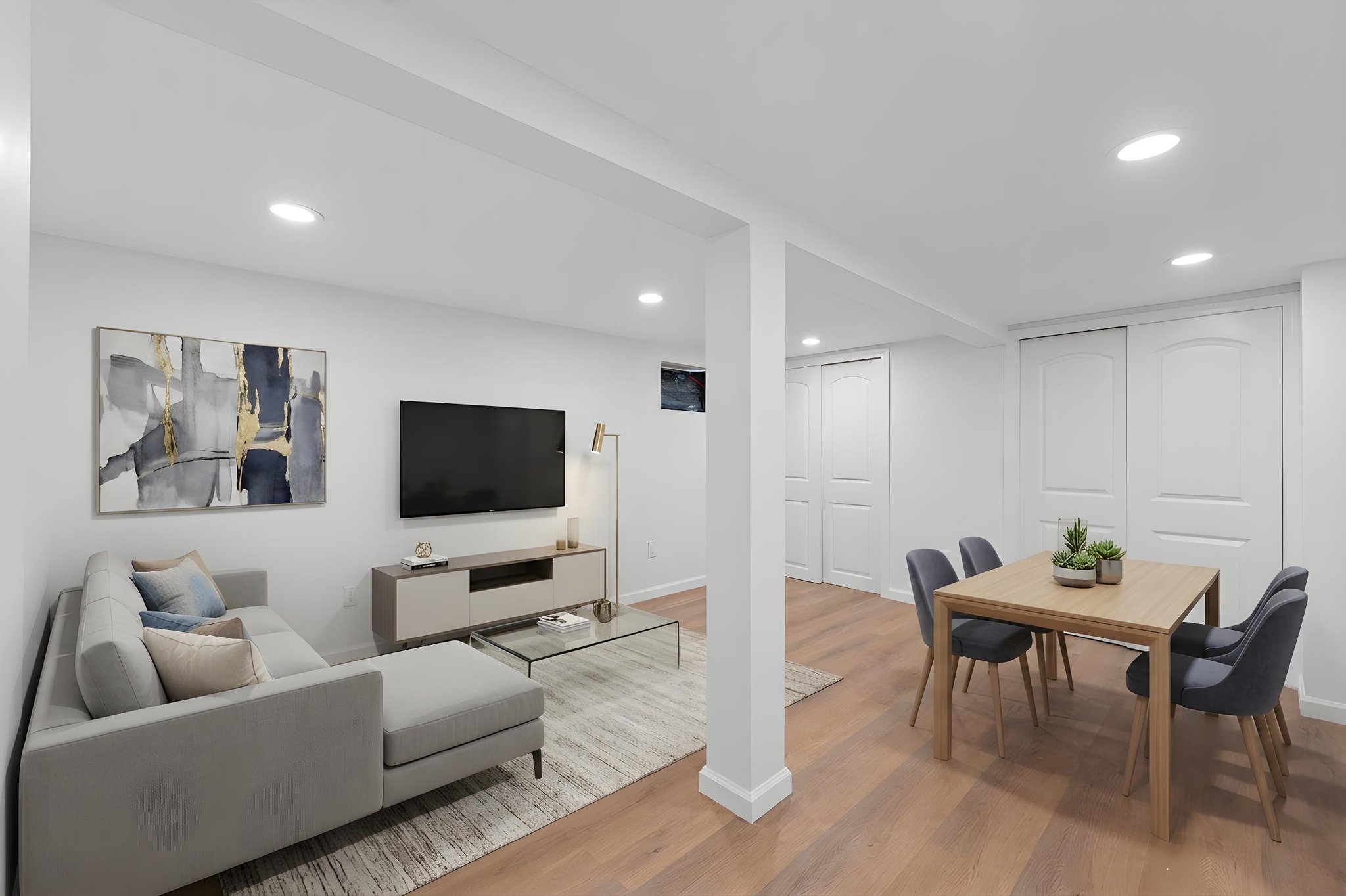 The full finished basement has both interior and exterior access. Fully finished with a summer kitchen, additional full bathroom this space can be used as the perfect ADU, in-law suite, guest quarters, additional recreational space or storage space.