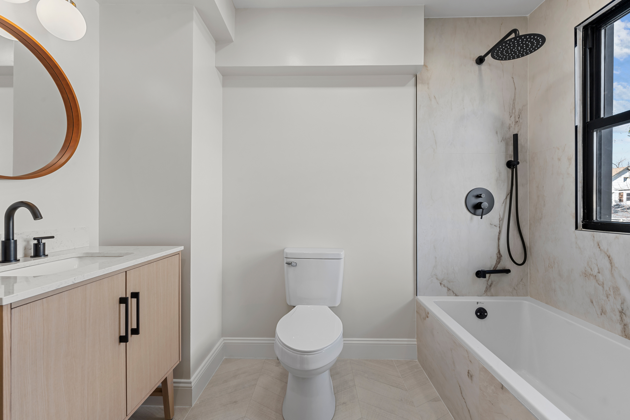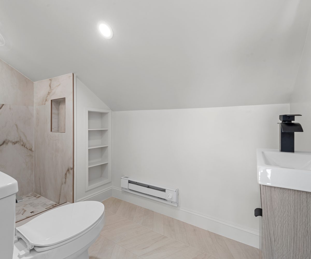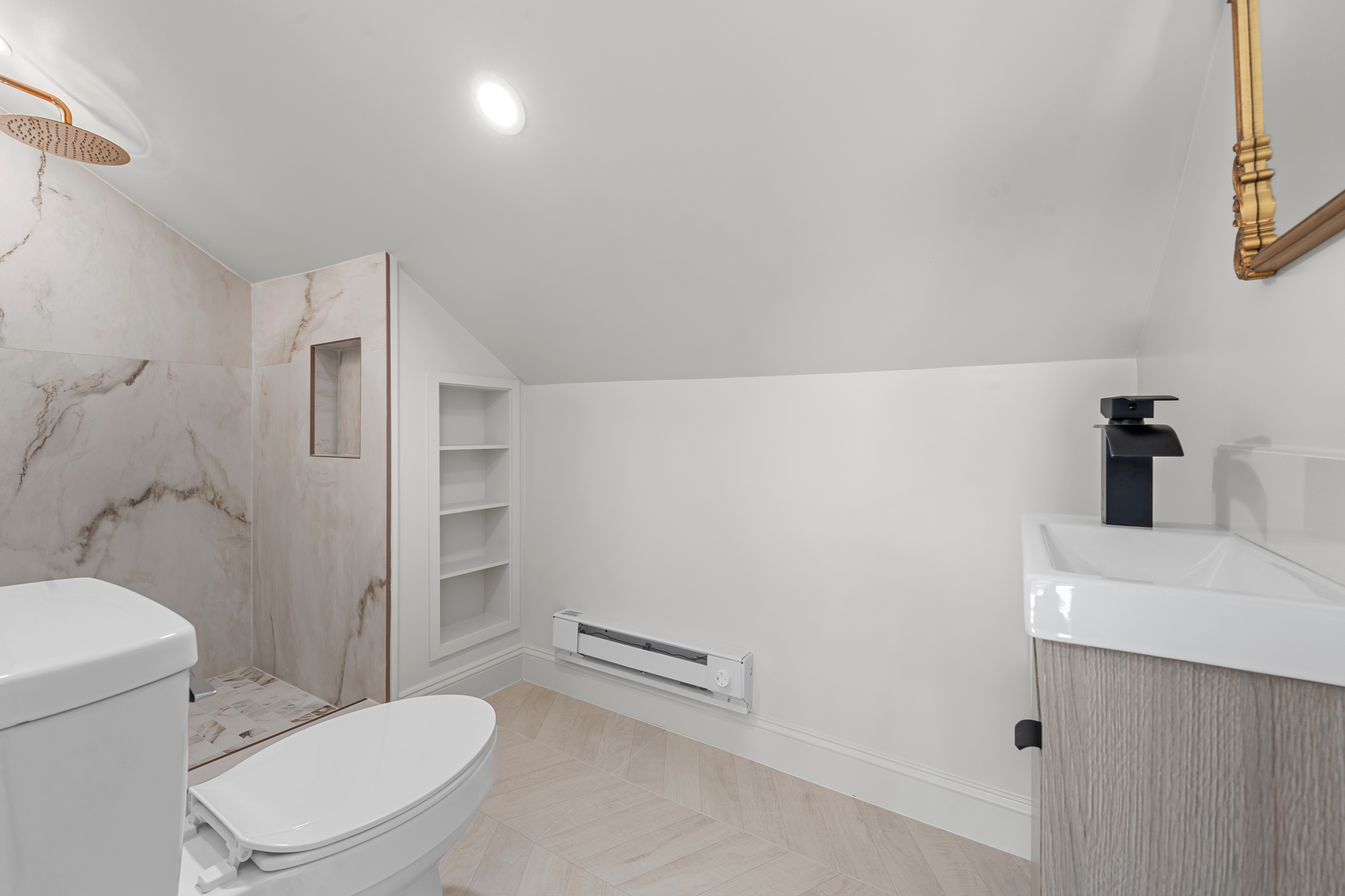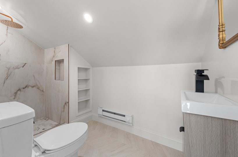 Up a flight of stairs, 3 additional spacious bedrooms awaits you, each equipped with ample closet space. Down the hall a fully tiled bathroom is adorned with state of the art wall & floor tiles. Up an additional flight of stairs the spacious attic is equipped as the primary suite which is adorned with a private en suite.