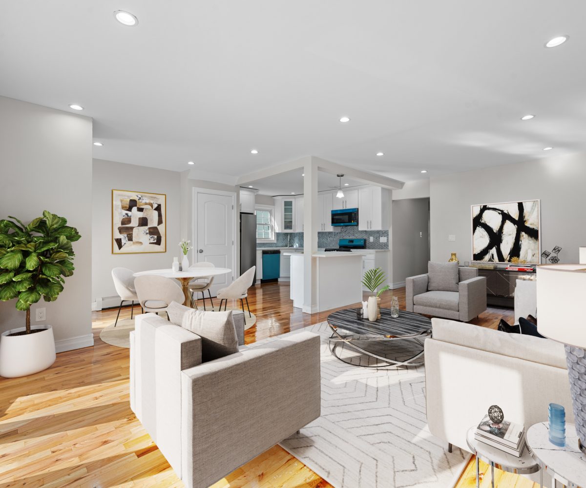 Renovations include brand new hardwood flooring, recessed lighting, updated electrical, heating and plumbing systems throughout.