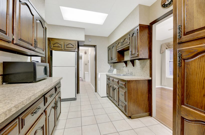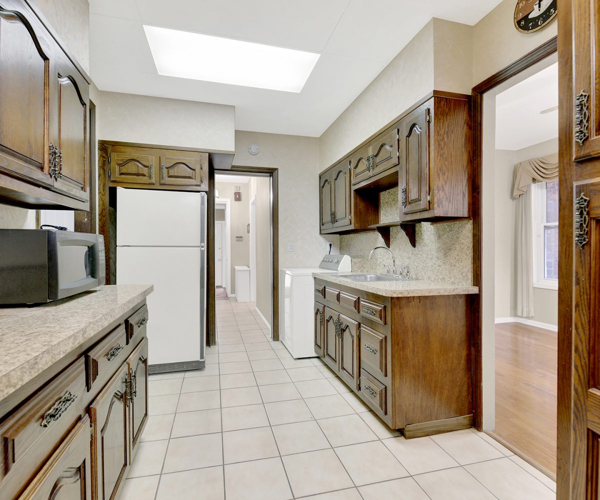 Expansive sun drenched formal living area provides great space for entertaining. Formal dining area leads into spacious chefs kitchen. Kitchen features floor to ceiling cabinetry, adorned with appliances, and leads out into lush rear yard. 1/2 bath on first floor for your guest.