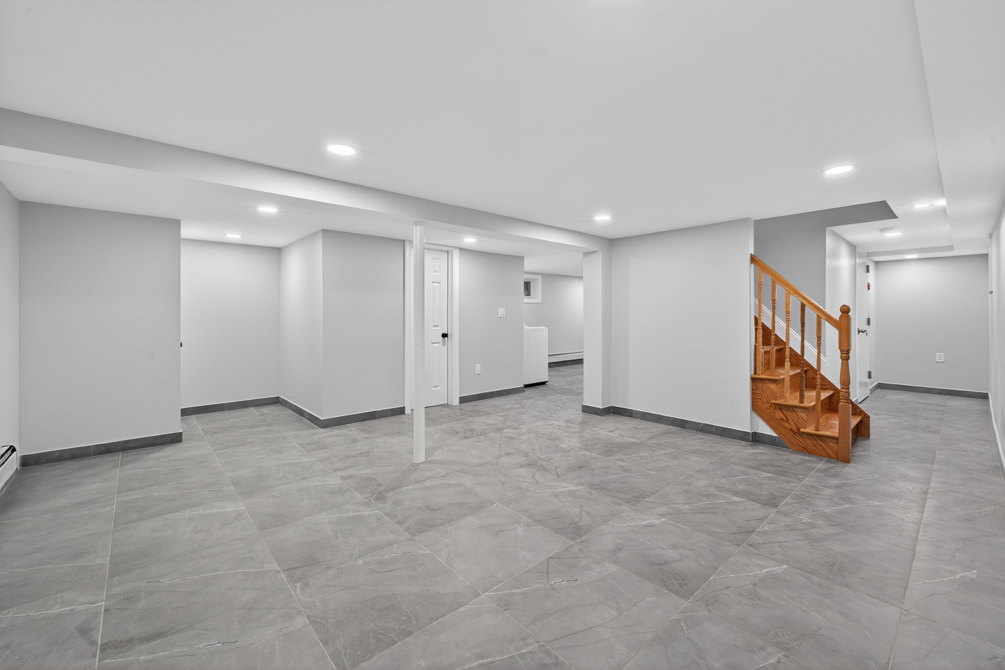 The high ceiling full finished basement is a HUGE space which provides the perfect escape! This space can be used as a media den, home office, play room, entertainment center, storage space, or additional recreational space. Equipped with an additional full bathroom and designated laundry area.