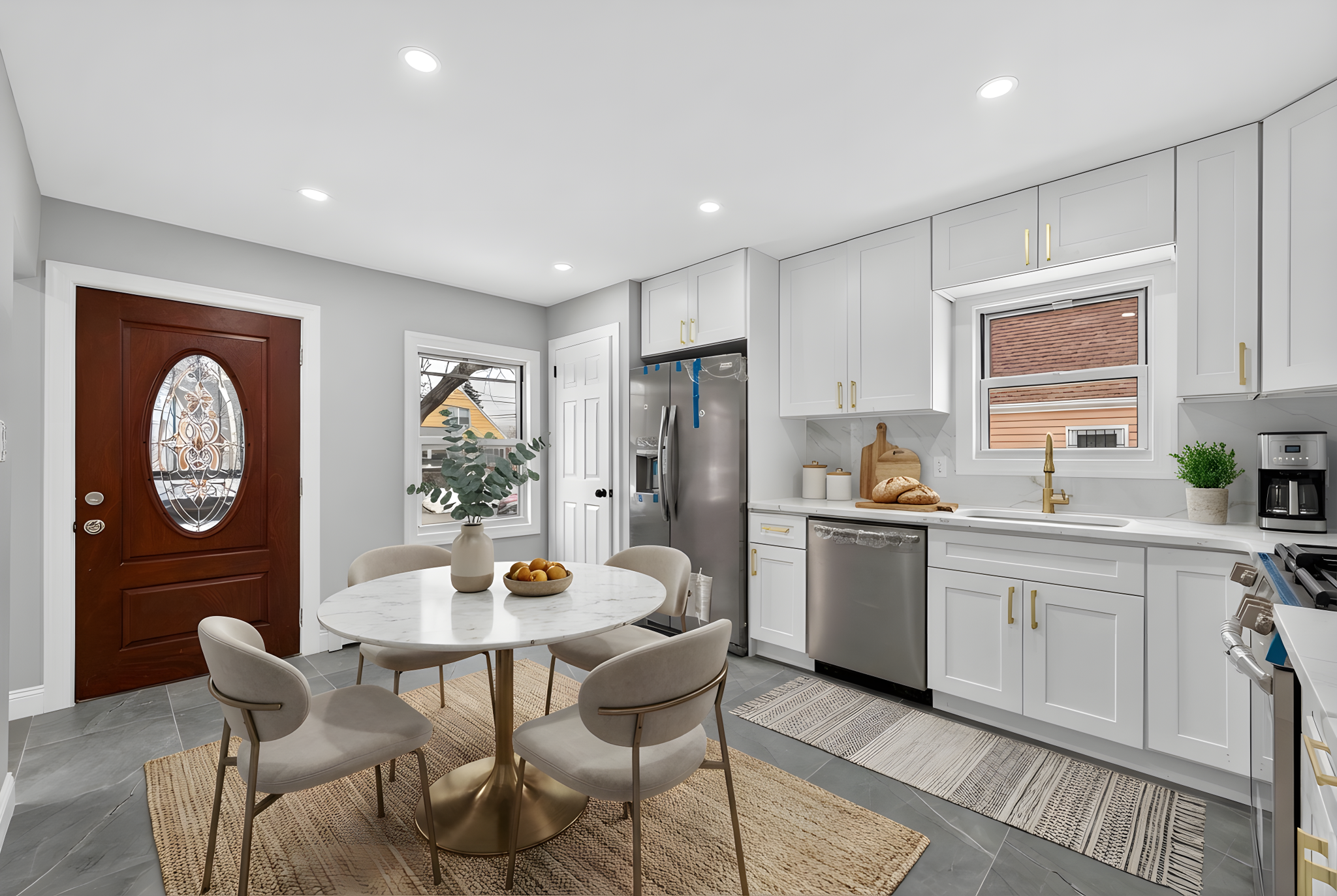 Renovations include brand new select wide oak wood flooring, recessed lighting, electrical, heating and plumbing systems throughout.